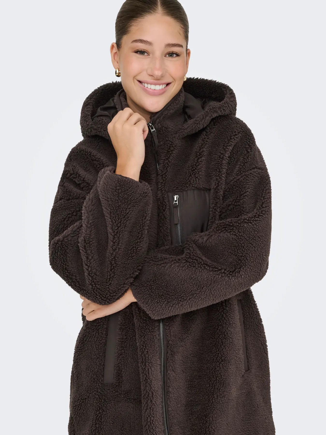 top off any look. - Product Type : Teddy coat - Neck : Hood - Closing : Zip fastening - Length/Size : Long - Lining : Polyester lining for a comfortable feel
