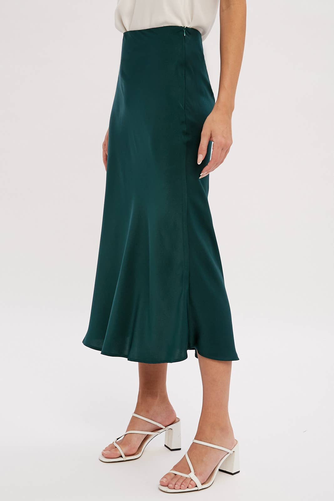 ​This sweet midi skirt is featured in a longline flowy silhouette, hidden side zipper closure, made with satin fabric. -Model is 5'9" and wearing a Small